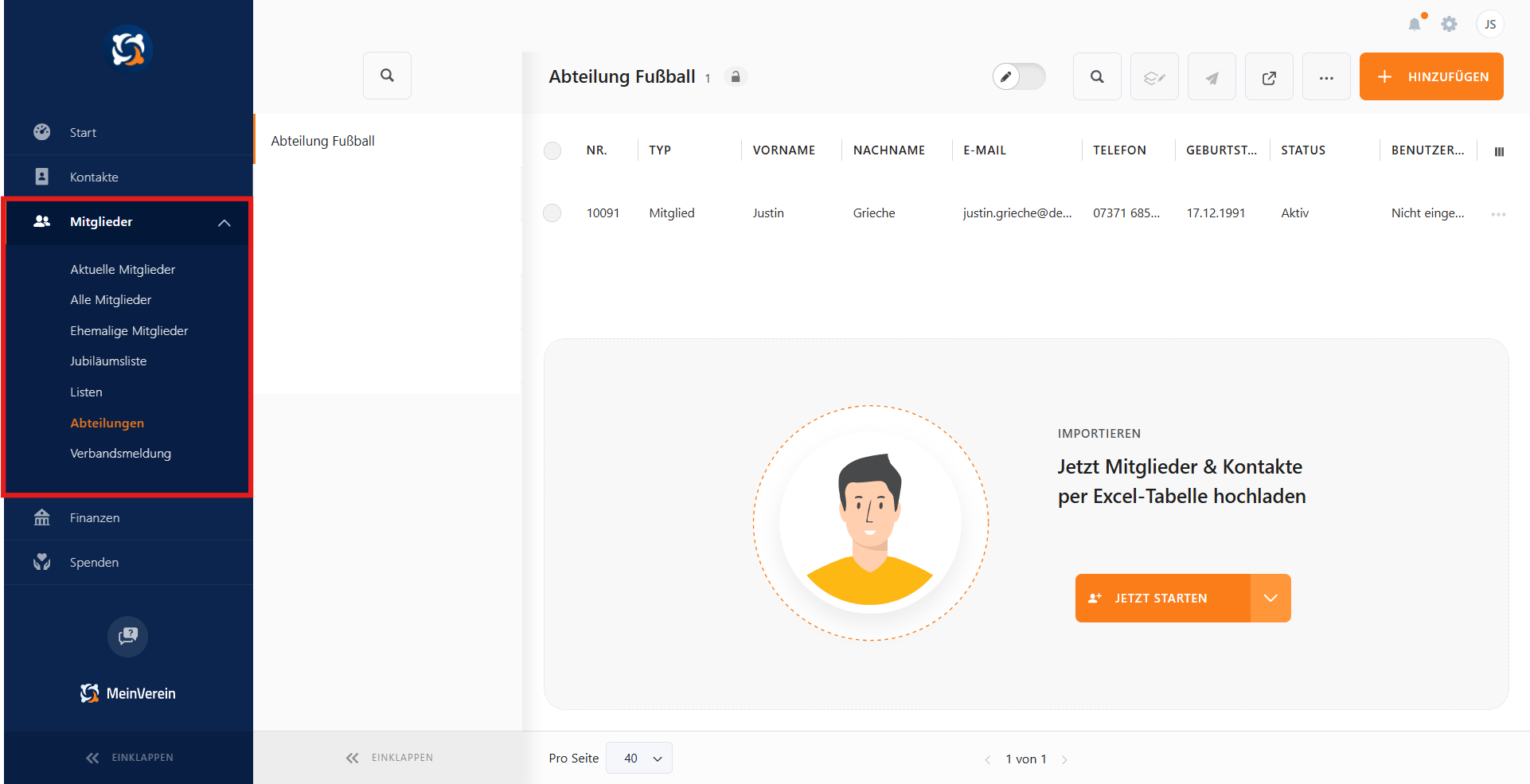Außerdem kannst du beliebig viele Abteilungen und Unterabteilungen erstellen, ganz nach Bedarf deines Vereins.