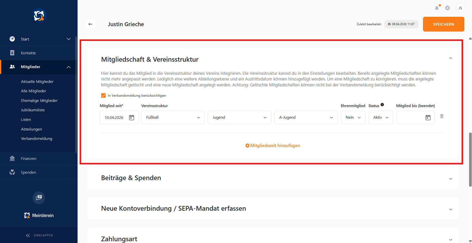 Abb. 4 Vereinsstruktur im Mitglied hinterlegen